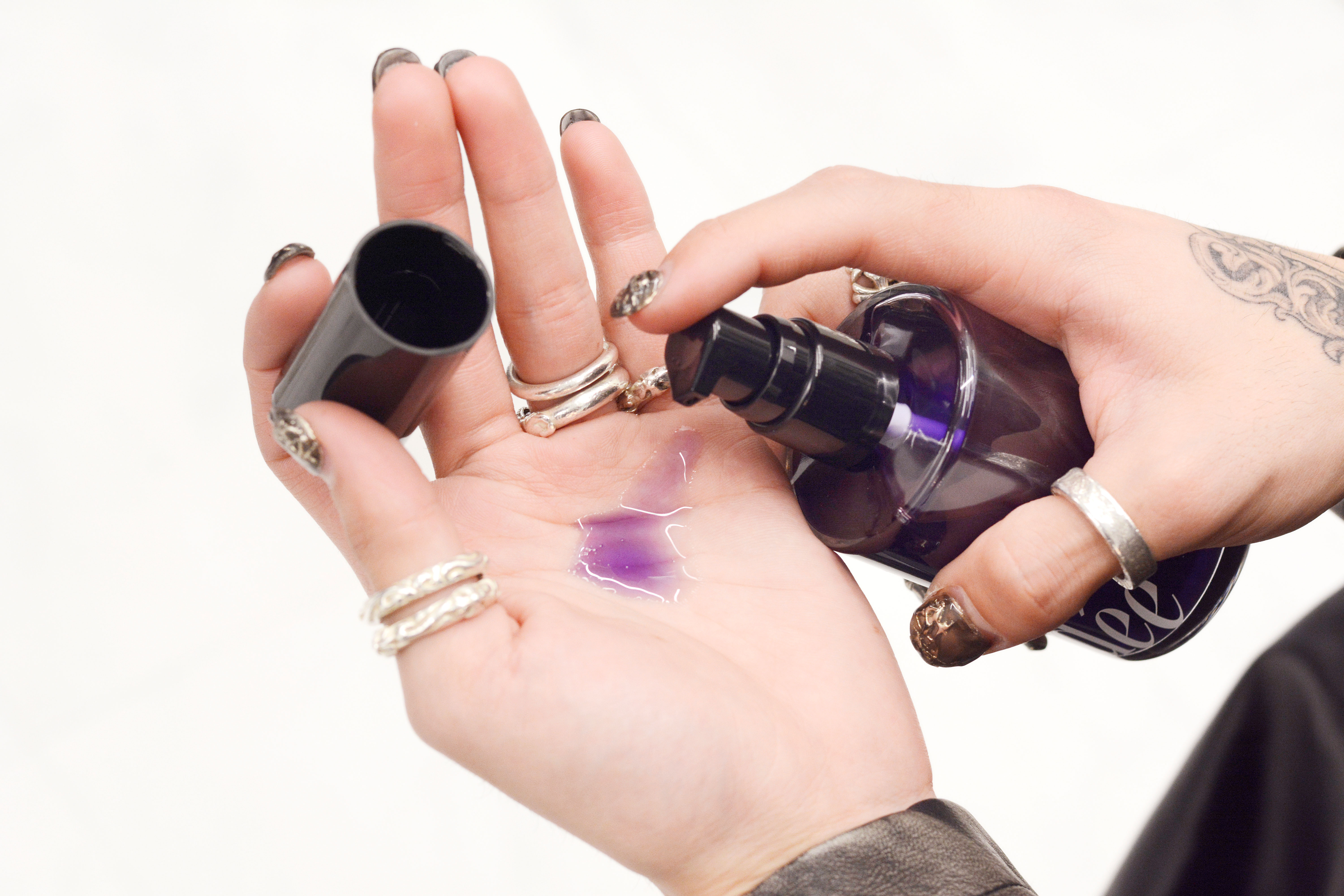 ブリーチ毛の黄ばみを和らげ、ヘアカラーに深みと奥行きを与える紫色素配合のヘアオイル