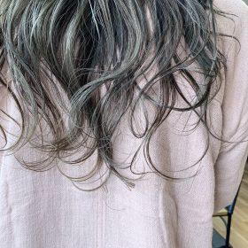 灰色と紫で作るブリーチ無しカラー