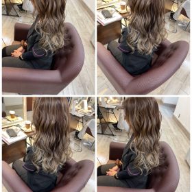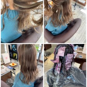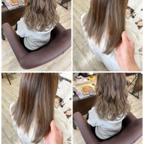 前回のハイライトにさらにハイライトを入れたミルクティーベージュカラー