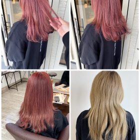 ブリーチ毛にローズヒップとベリーベリーピンクで染めてみました
