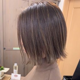 スロウでつくるダークトーンにハイライトでコントラストをつけた外ハネボブ