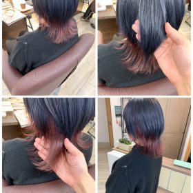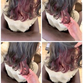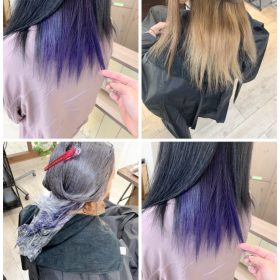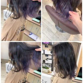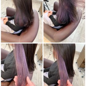 インナーカラーにはブリーチしてティントバーのロイヤルパープル単品がお洒落