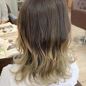 くせ毛を活かして毛先をブリーチしたグラデーションカラー