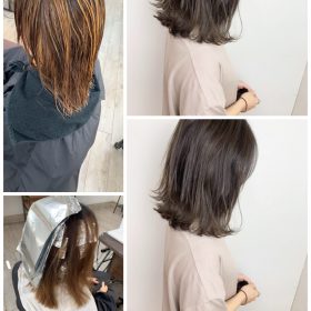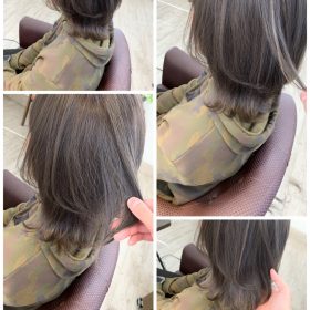ブリーチハイライトベースにスロウでつくるアッシュグレージュのヘアカラー