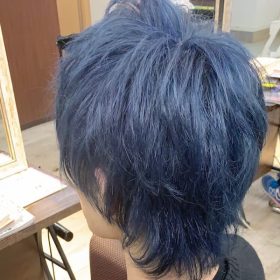 ブリーチ毛にティントバーのインディゴブルー単品を入れたメンズスタイル