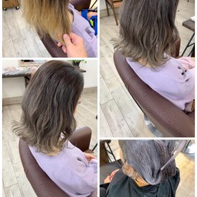 バレイヤージュでベースをつくったアッシュグレージュカラー