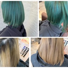 ブリーチ毛にティントバーのパーフェクトシアン単品で染めたボブスタイル