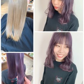 明るいブリーチベースにスロウでつくるパープル系カラー