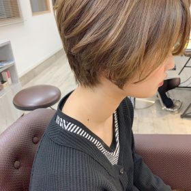 ショートヘアにハイライトで毛束感を出しながらベージュカラーに