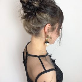 お団子アレンジをより映えて見せるダーク系とハイトーンのツートーンカラー
