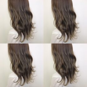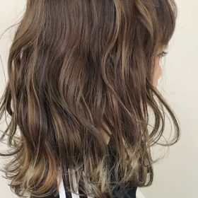 バレイヤージュと細目ハイライトのベースにアッシュシャンプーで色味をプラス