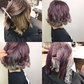 3回ブリーチベースにシルバーとパープルのツートーンカラー