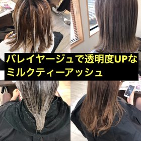 バレイヤージュで透明度UPなミルクティーアッシュのヘアカラー