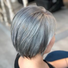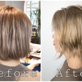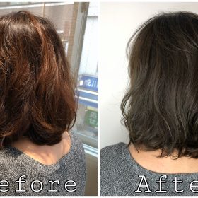 ブリーチ毛にノーブルグレーで染めた仕上がり