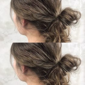 【お団子アレンジはハイライトを入れてルーズな立体感を出すとオシャレ度アップ!】