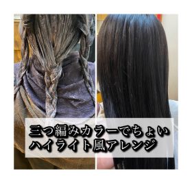 三つ編みカラーでちょいハイライト風アレンジ