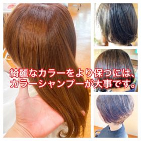 綺麗なカラーをより保つには、 カラーシャンプーが大事です。