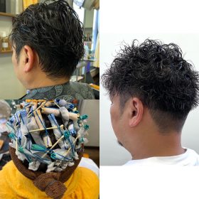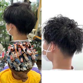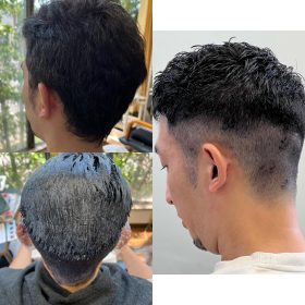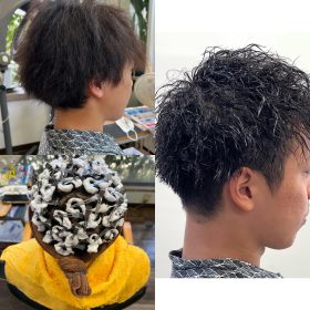 ツイストスパイラルパーマにブルーブラックがカッコいい