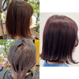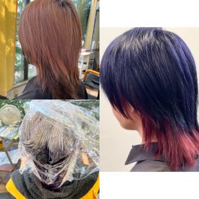 ブリーチ必須のブルーブラックとレッドの派手髪