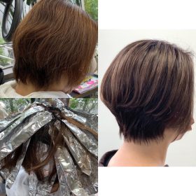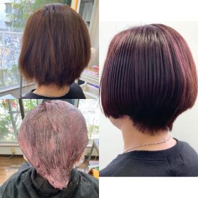 白髪も染まる可愛いピンクブラウンとショートボブ