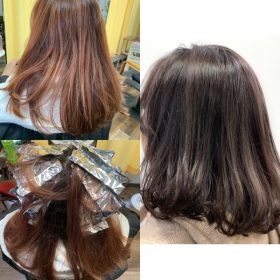 ブリーチハイライトを使って赤味の少ないミルクティーベージュに
