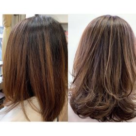 ハイライト必須赤味を抑えたグレージュカラー