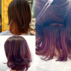 インナーカラーブリーチハイライトでラベンダーカラーに