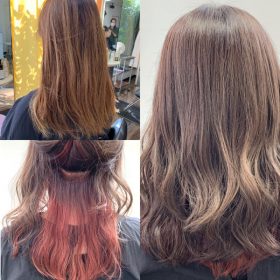 白髪染めでも出来るグレージュカラーとオレンジのインナーカラー【ブリーチ必須】