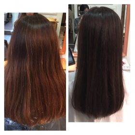 オレンジ味からのツヤ感アップなアッシュカラー