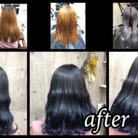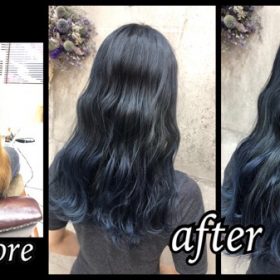 ブリーチからの濃厚なネイビーグラデーションでお洒落カラー