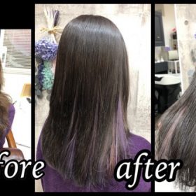 インナーカラーラベンダーと透明感カラーがお洒落
