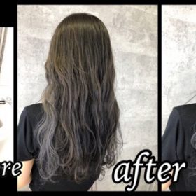 赤味抹殺なグレーラベンダーで透明感のある艶カラー