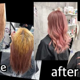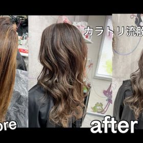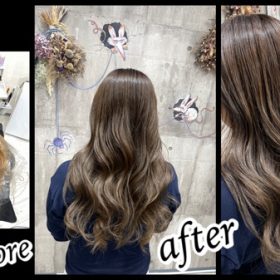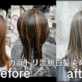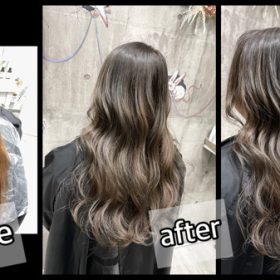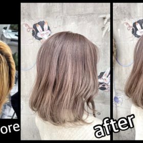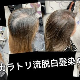 脱白髪染めで土台の赤みを減らして外国人風カラー
