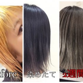 【緊急速報!】ブリーチ毛に新色のヴァイオレットアッシュを濃く染めた2週間後の退色・・・