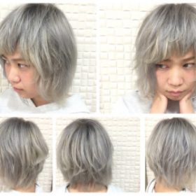 白っぽいハイライトを活用した外国人風アッシュグレーがお洒落!