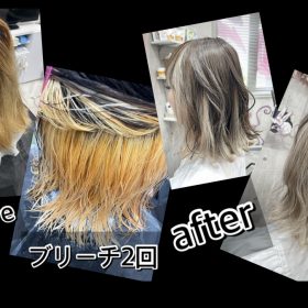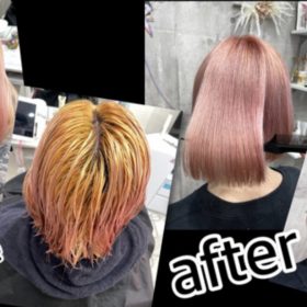 ブリーチからは濃いめなオンカラーで退色も楽しめるヘアカラーに