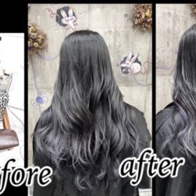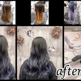 ハイブリーチ毛からのオンカラーで濃厚なラベンダーグレーが綺麗!