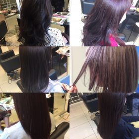アシスタントのブリーチ毛に、アッシュとバイオレットで染めてみました