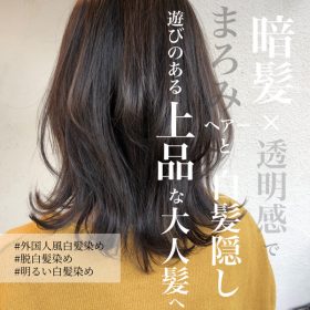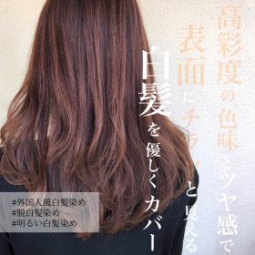 高彩度な色味と艶感で表面の気になる白髪を優しくカバーする方法