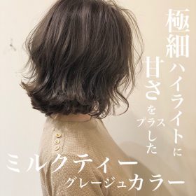 極細ハイライトをちりばめた甘めミルクティーカラー