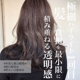 脱白髪染めハイライト『第一回目』積み重ねる事でうみだす透明感カラー