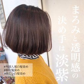 ハイライトと万能色『ロイヤルパープル』を使った白髪カバーと透明感を両立させるカラ・・・