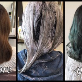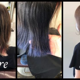 白髪を染めながらブリーチを使ってインナーカラーをブルーに