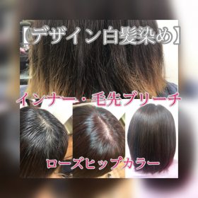 【白髪染め】インナー・毛先ブリーチでデザイン的ローズヒップカラー