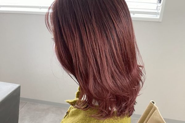 ブリーチ毛にローズヒップで染めた色濃い暖色カラー