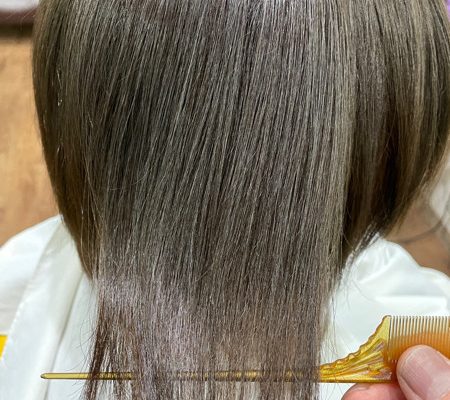 根本の白髪と毛先の退色をまろみベージュで柔らかくカバーする方法