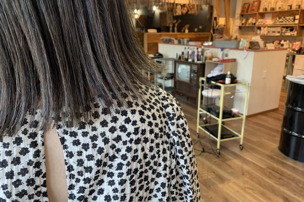 灰色と紫で作るブリーチ無しカラー