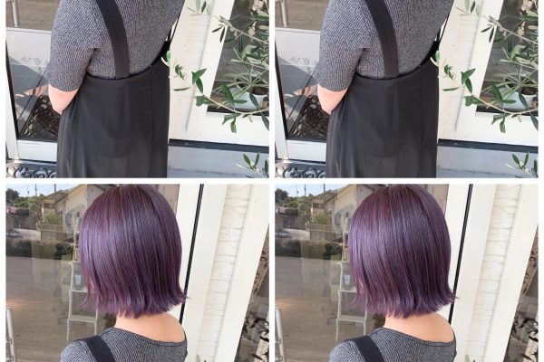 ティントバーとスロウでつくるパープルカラーの切りっぱなしボブ