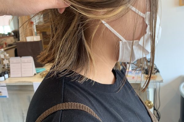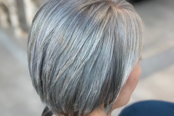 ブリーチ毛にノーブルグレーで染めた仕上がり