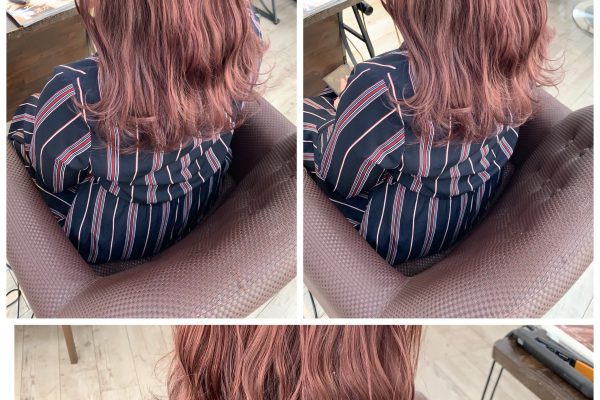ハイライトを入れてティントバーで染めたピンク系カラー